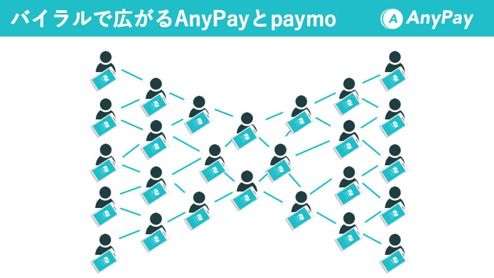 こちらの図は、バイラルで広がるAnyPayを表しています。BtoCでもCtoCでも、お金のやり取りは1人で遊ぶゲームと違い、相手があって成り立つものです。誰かが使ってくれ、「paymoで割り勘しようよ、これ簡単だし」と言ってくれると、そこから口コミを通して実際に広がっています。