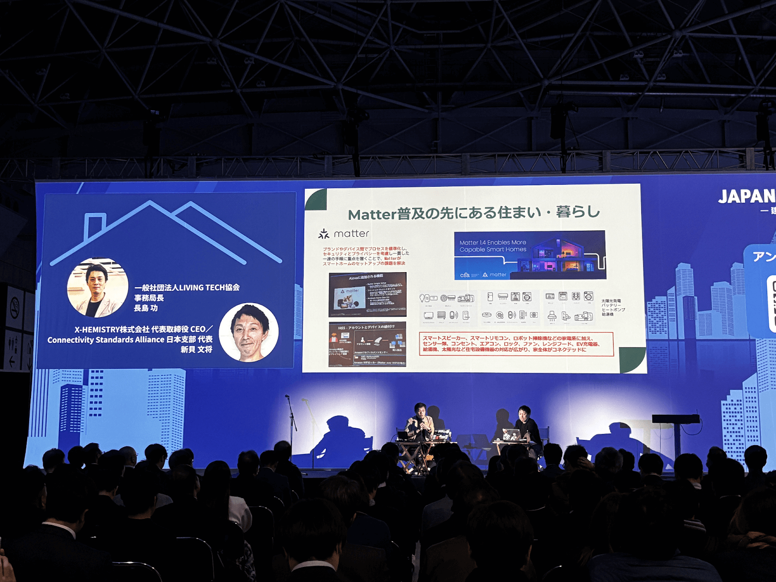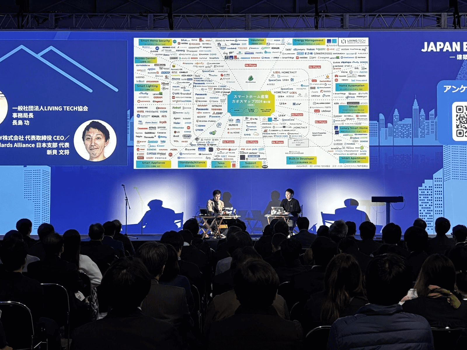 2024年12月11日に、日本最大級の建築業界向けの展示会「JAPAN BUILD」の東京開催にて、参画企業でスマートホーム産業カオスマップの監修協力をいただいているスマートホームのプロ集団X-HEMISTRY/CSA日本支部代表の新貝氏と、当協会事務局の長島が登壇いたしました。