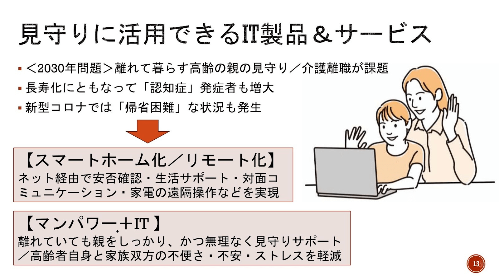 通常は、自治体や介護系団体などに対してこの講座を開催されていましたが、ご自身の経験から、一般の方向けにも高齢者の親介護&サポート、すなわり見守りや安否確認、コミュニケーション、認知症サポートなどのためのスマートホーム活用の支援になるように情報発信をされたいというご相談をいただき当協会でも、介護事業者や、障害者支援の団体などからスマートホームの利活用に関して相談を受ける機会が増えてきたため、会員企業向けの勉強会を開催することとなりました。
