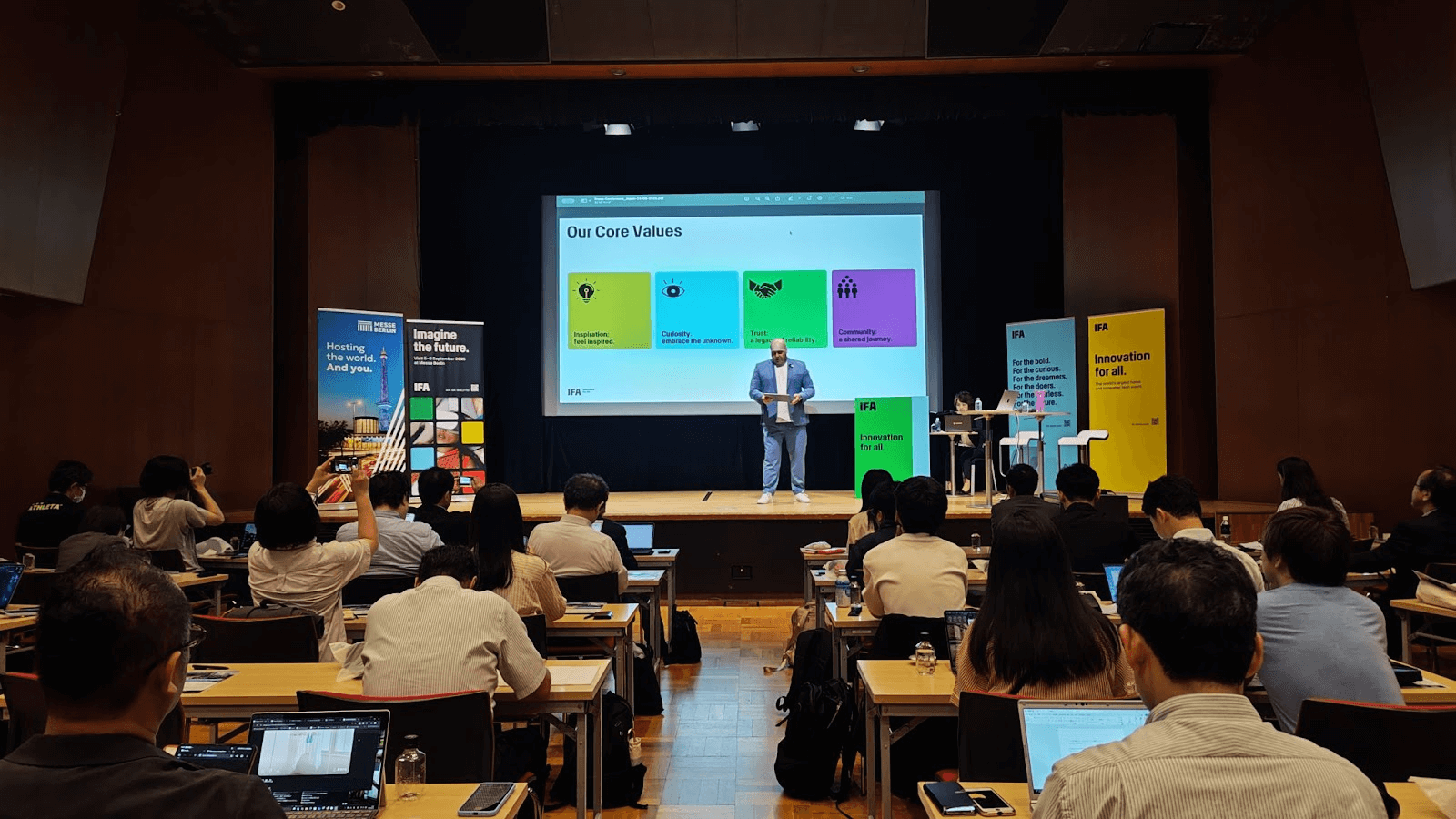 今回は、IFA Management GmbH CEOのライフ・リントナー氏が来日され、IFAの特徴や内容、トレンドなど、IFA2025 に関する最新情報の講演が行われました。