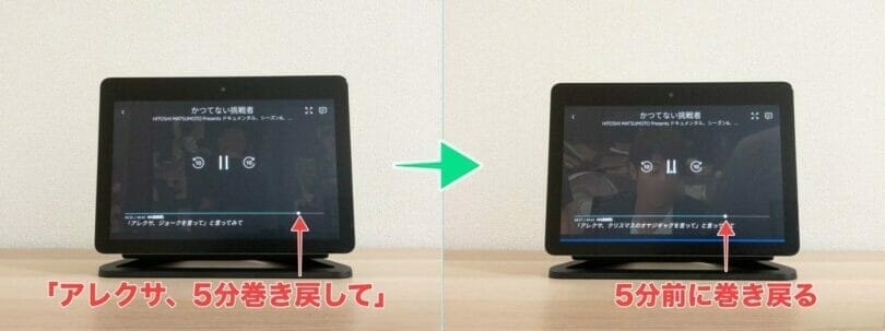 料理中や作業中など、手が離せない時に少し見逃してしまった場面を「アレクサ、10秒戻って」とすぐに巻き戻せるのは非常に快適です。