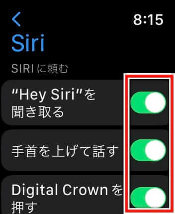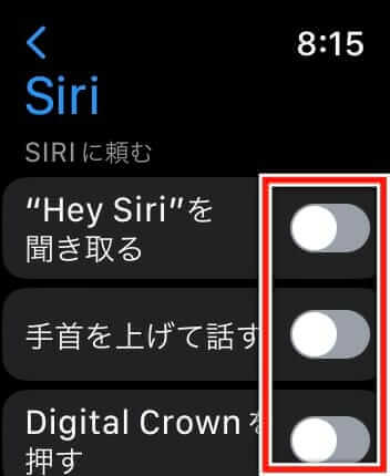 Siriが不要な場合でも、Digital Crownを長押しすれば手動で起動できます。完全に無効化しなくても、音声検出だけをオフにするのが現実的な方法です。