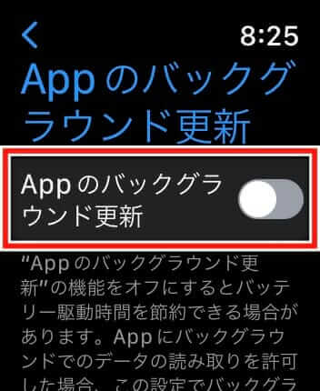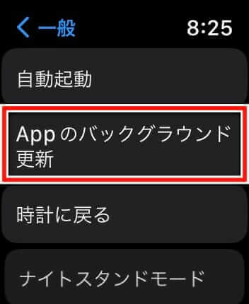 - Apple Watchで「設定」→「一般」→「Appのバックグラウンド更新」を開く