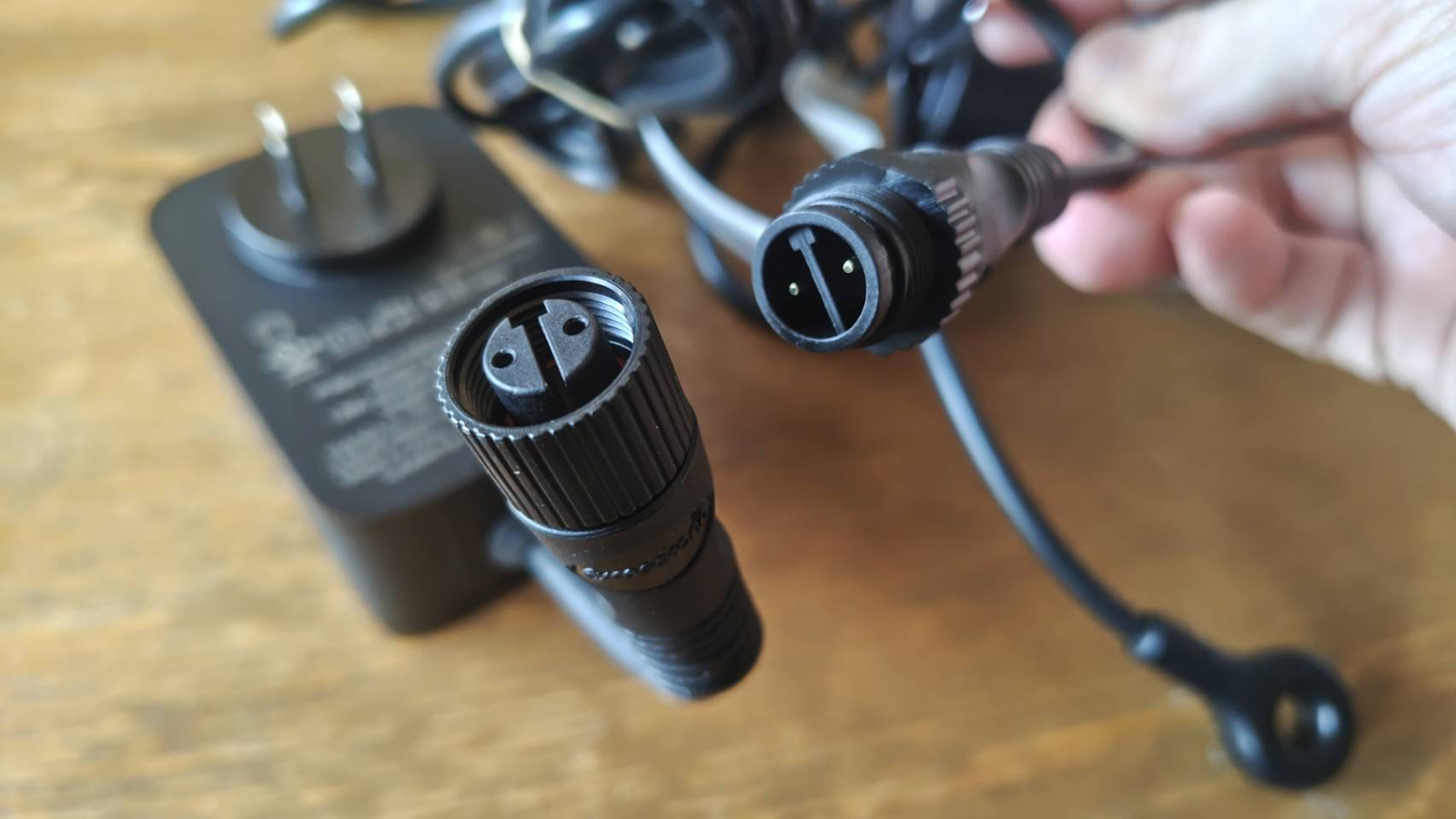- 防水電源コネクタ:電源アダプターとの接続部は、差し込んでからネジのように回して固定する仕組みです。パッキンも内蔵されており、雨水の侵入を防ぐ確実な防水対策が施されています。もちろん低電圧システムを採用しているため、電気的な安全性も確保されています。