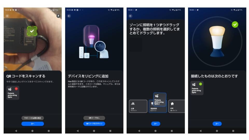 Hueアプリには、このストリングライトの形状を活かした独自の照明効果が用意されています。
