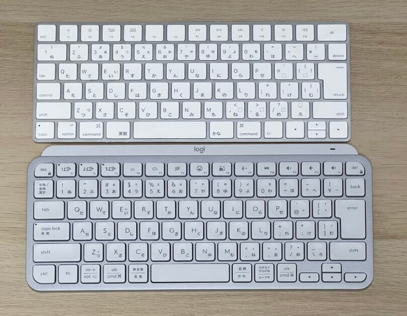 MX Keys MiniはWindowsとMac両対応を想定した設計のため、Mac純正のMagic Keyboardと比べてキー配列が一部異なります。