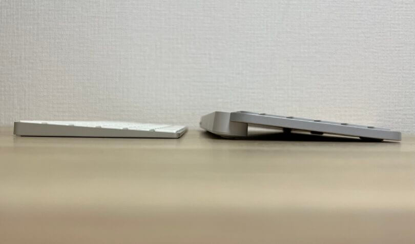 ただし「浅い=ペコペコした感触」ではありません。キーを押したときにしっかりとした反発感があり、押し込んだ手ごたえをきちんと感じられます。MacBookのキーボードよりも押し応えがあり、長時間タイピングしても疲れにくい印象です。