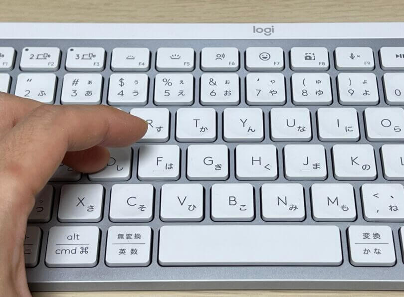 Bluetoothキーボードは、コンパクトさを優先してキーピッチを詰めた製品も多いです。同ロジクールの「K380」がその代表例で、丸いキートップと狭めのキー間隔が特徴的です。