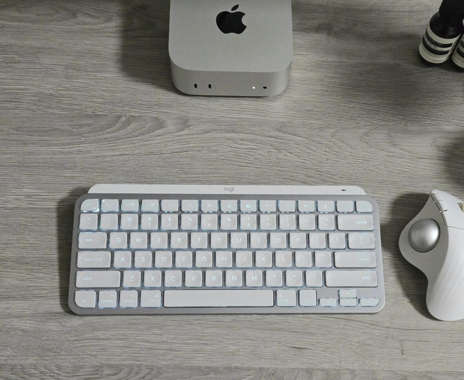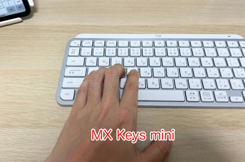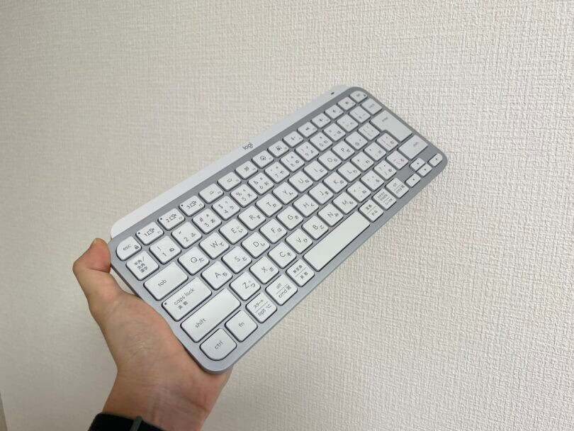 MX Keys Miniは19mmのフルピッチを確保しており、一般的なノートパソコンと同じキー間隔です。ブラインドタッチでの入力がスムーズで、長時間の文章作成でも指が迷いにくいです。