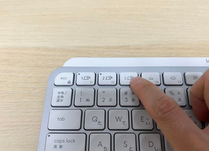 F1・F2・F3キーを長押しすることで各デバイスにペアリングでき、以降はワンタッチで切り替えが可能になります。切り替えの応答速度も速く、体感では1〜2秒以内に接続が完了します。