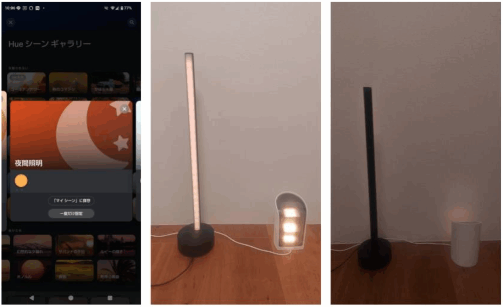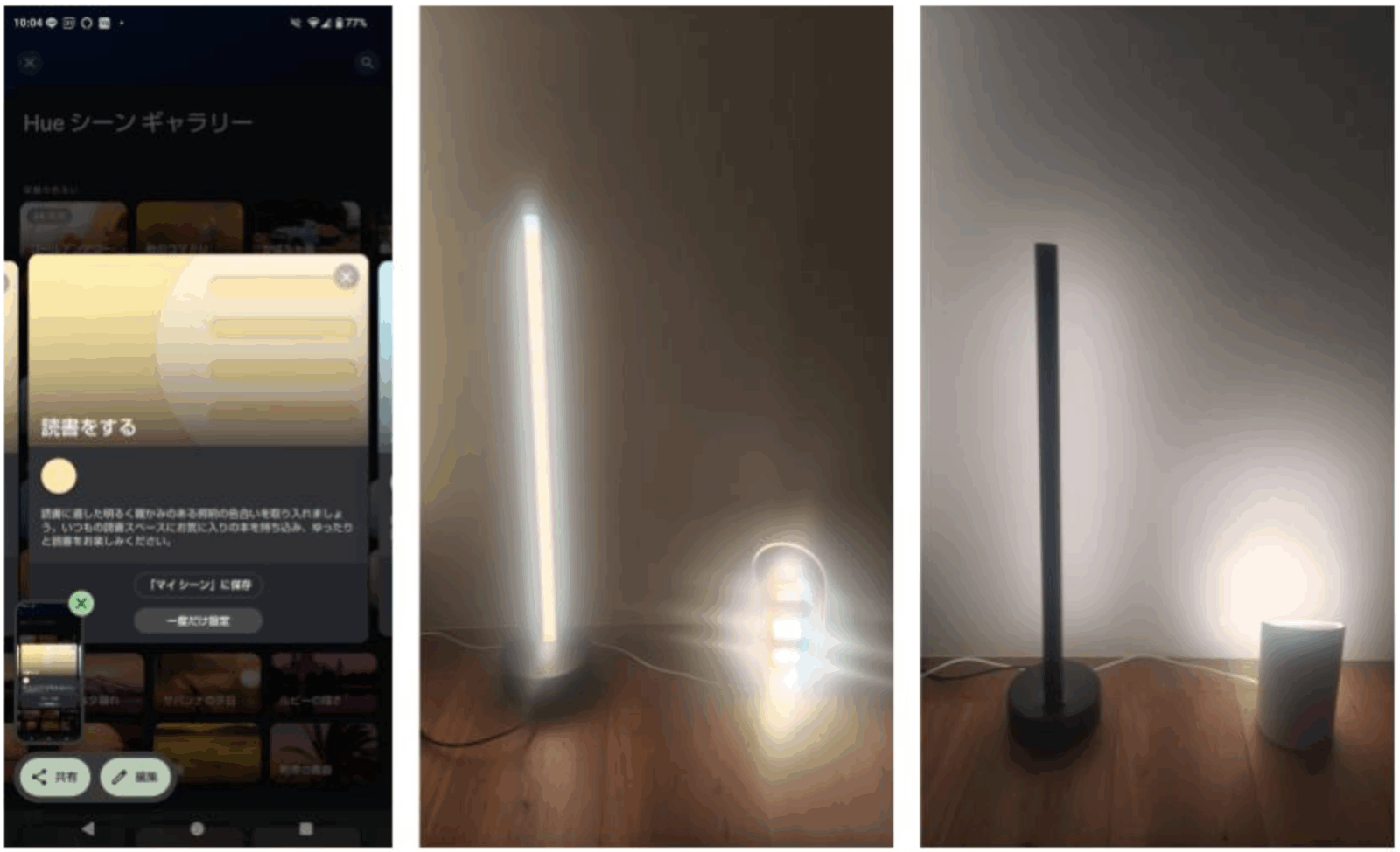 もちろん、映像と連動させない日常使いでもその表現力は健在です。Hueアプリに搭載されている「シーンギャラリー」から、いくつかのプリセットを試してみました。