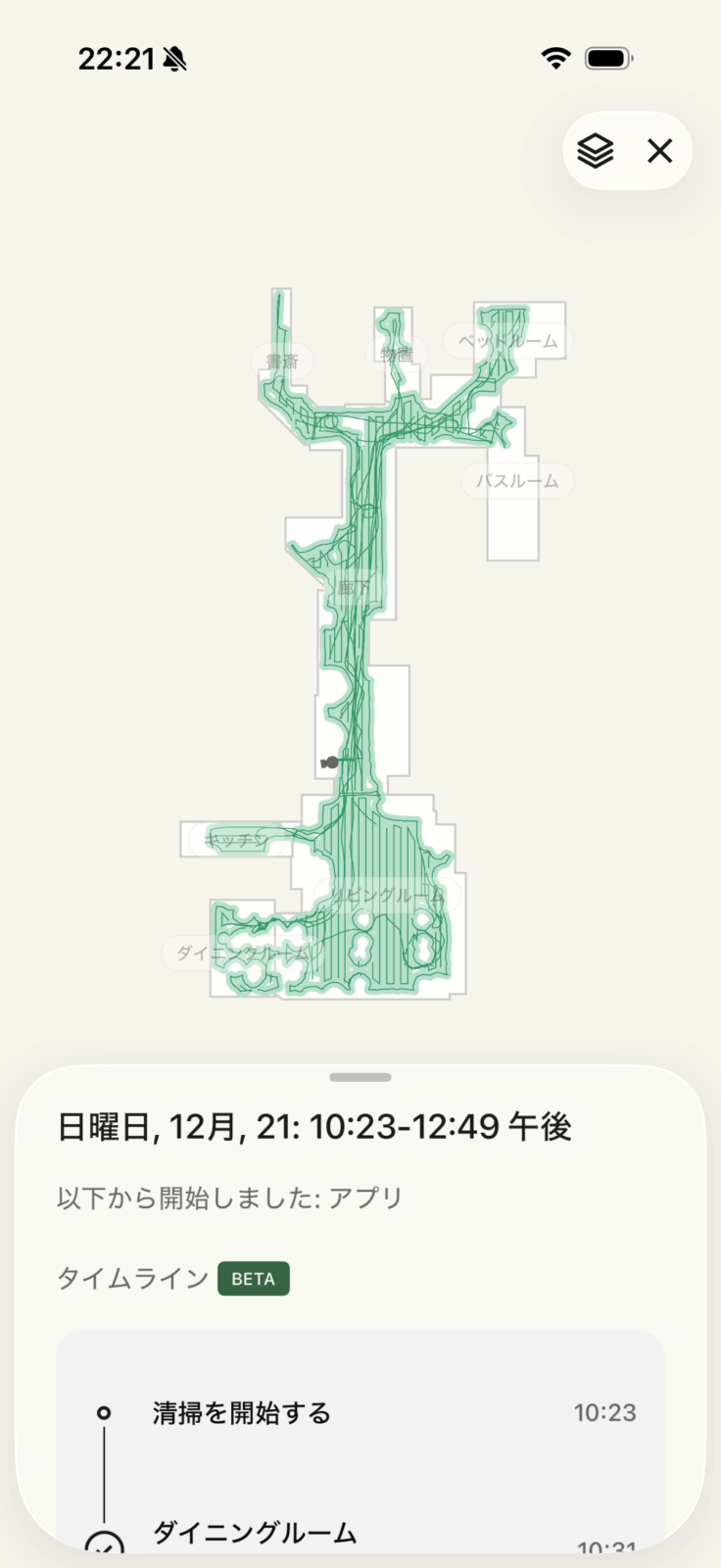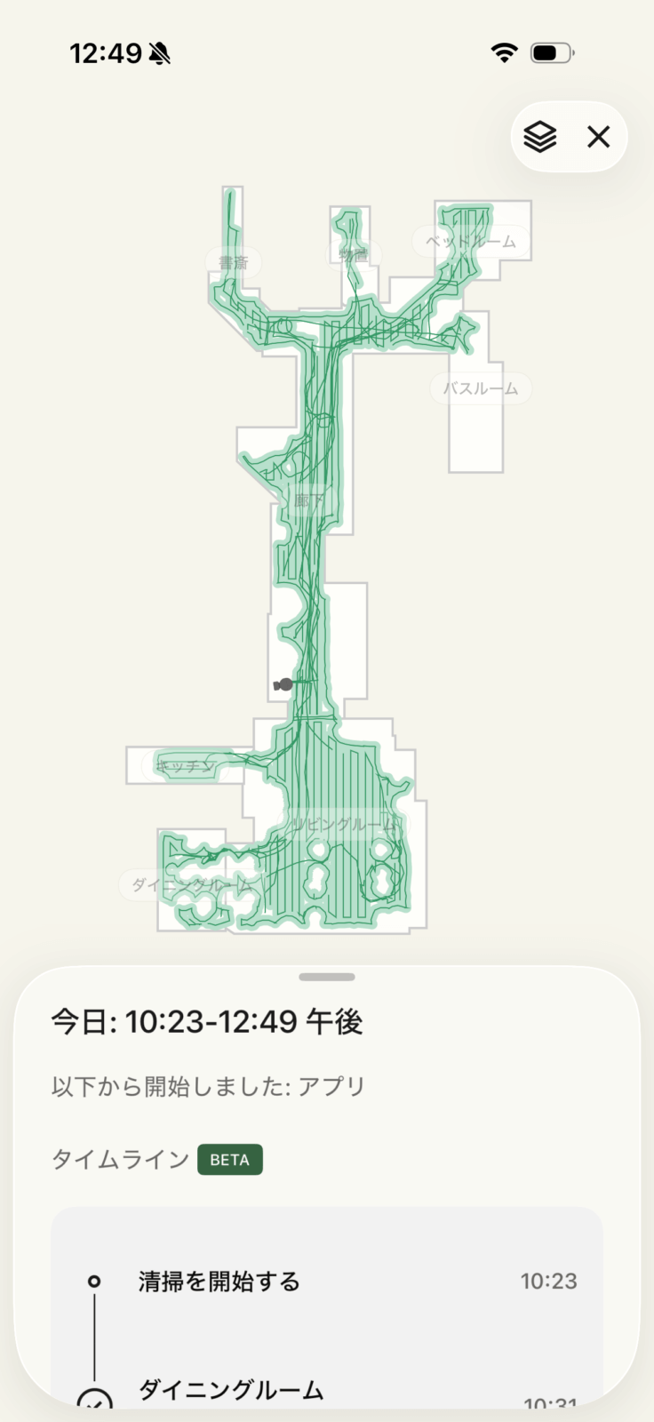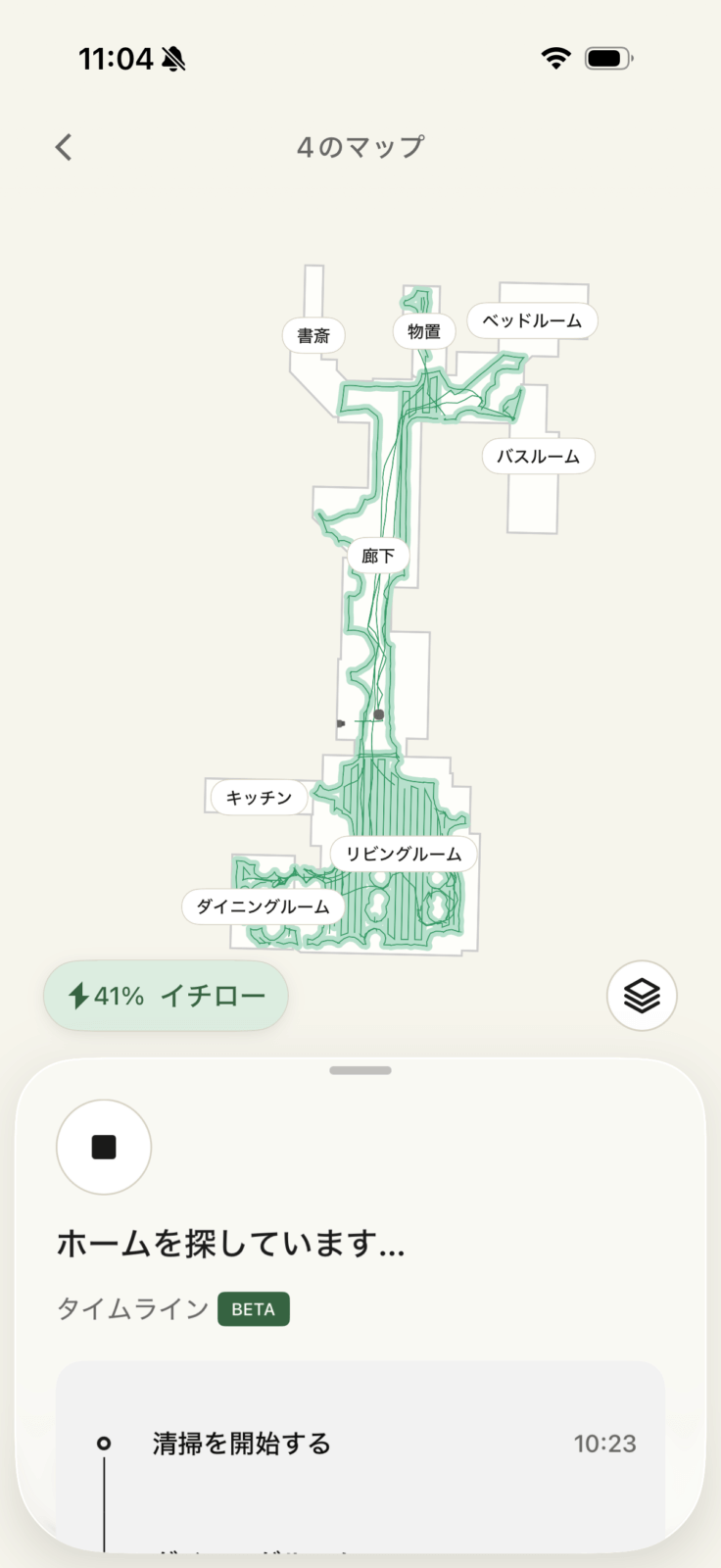 ここで登録した部屋割りは、走行中にどこを清掃しているかを教えてくれます。