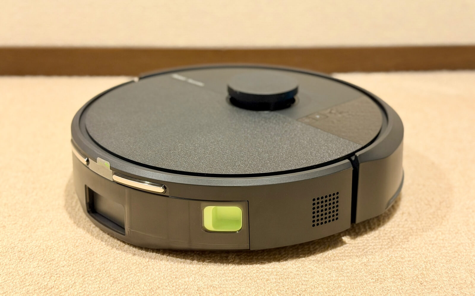 上位機種にあるデュアルアクションブラシ(2本のゴム製ブラシ)ではありませんが、この構成は一般的なロボット掃除機に多く採用され、フローリングの隙間の微細なホコリから、カーペットに絡みつく髪の毛まで掻き出す実力を持っています。