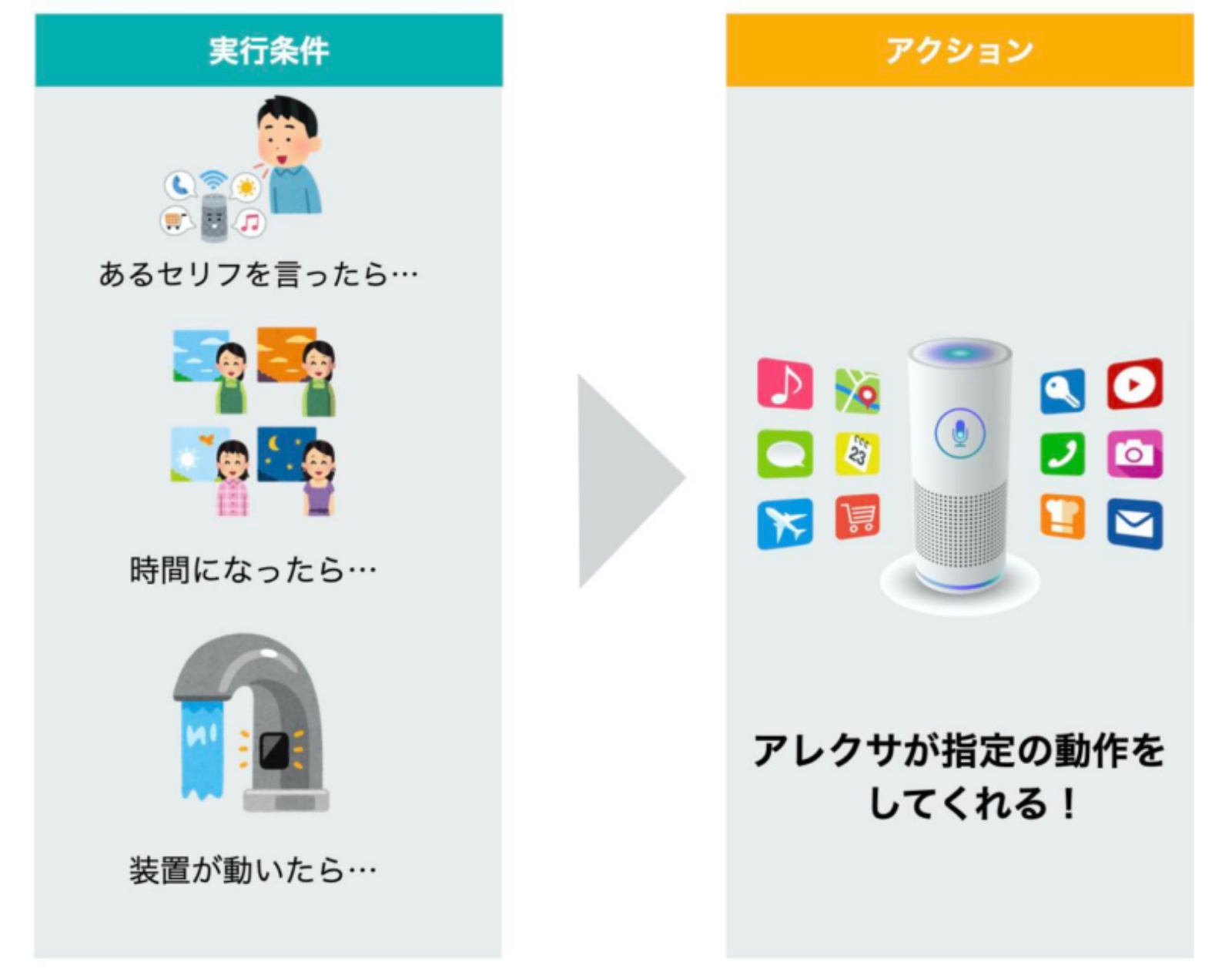 先述のGoogleアシスタントとAmazon Alexaを例に取ると、以下のとおりです。