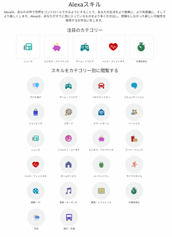 スマートフォンの「アプリ」に相当するのが「スキル」です。