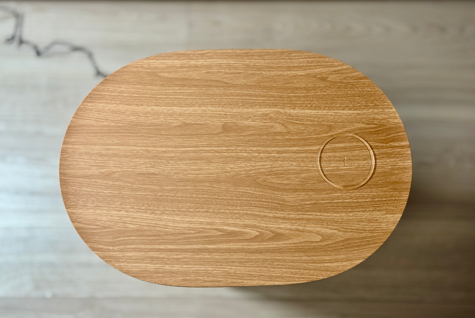 まず目を引くのは、その外観です。「空気清浄機Table」という名の通り、一見すると円形のサイドテーブルにしか見えません。
