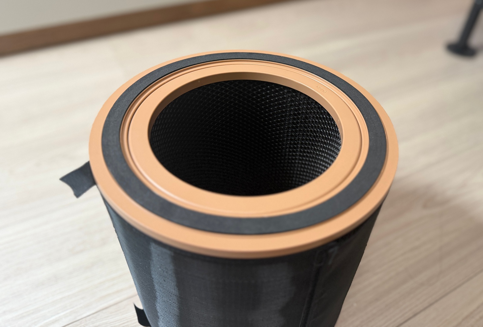 これにより、空気清浄機本体のボリューム感が視覚的に軽減され、圧迫感を覚えにくい作りになっています。家電を置いているという感覚よりも、インテリアの一部を追加したという感覚に近かったです。