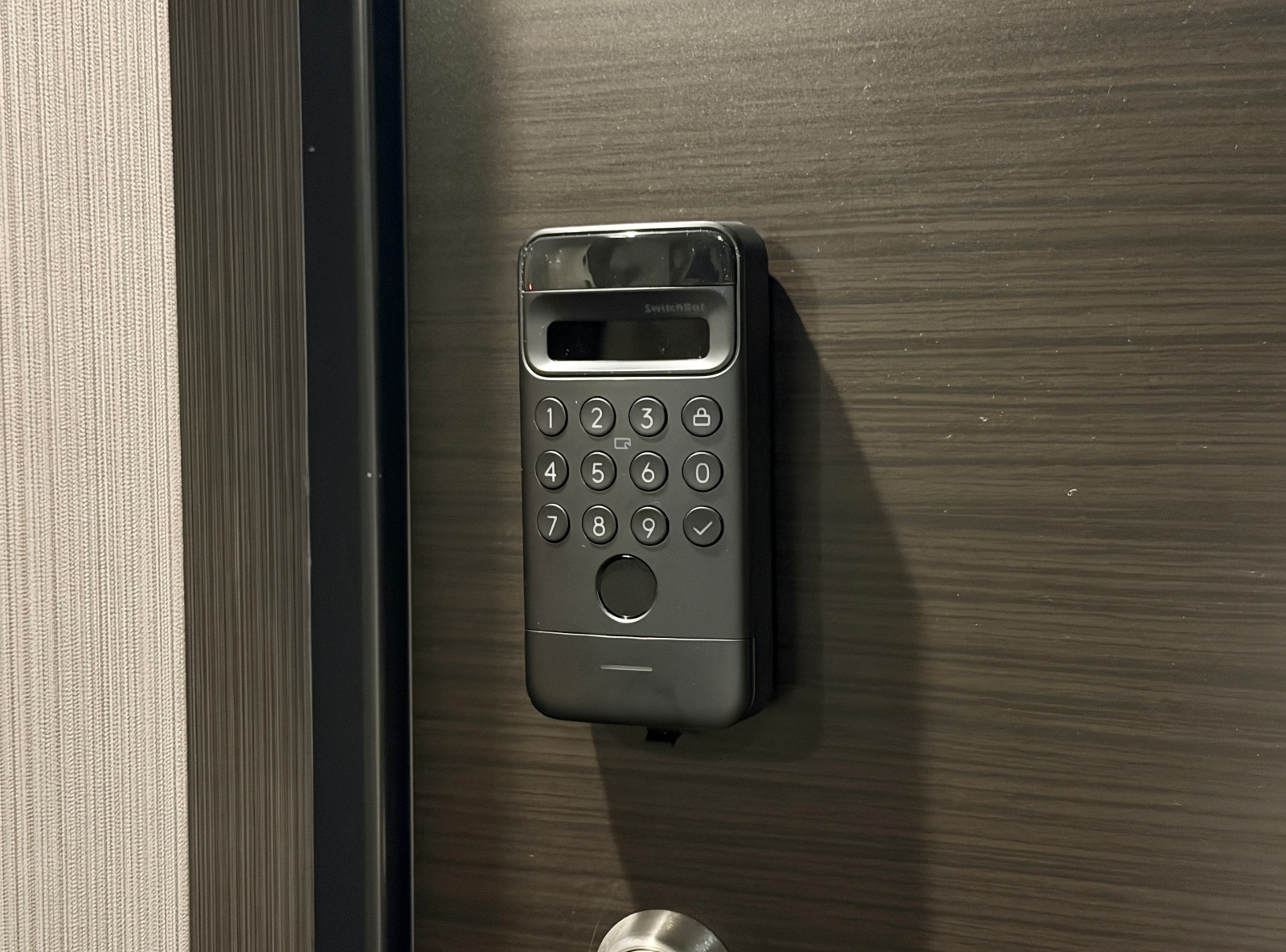 自室の玄関前では、「SwitchBot 顔認証パッド」を活用しています。