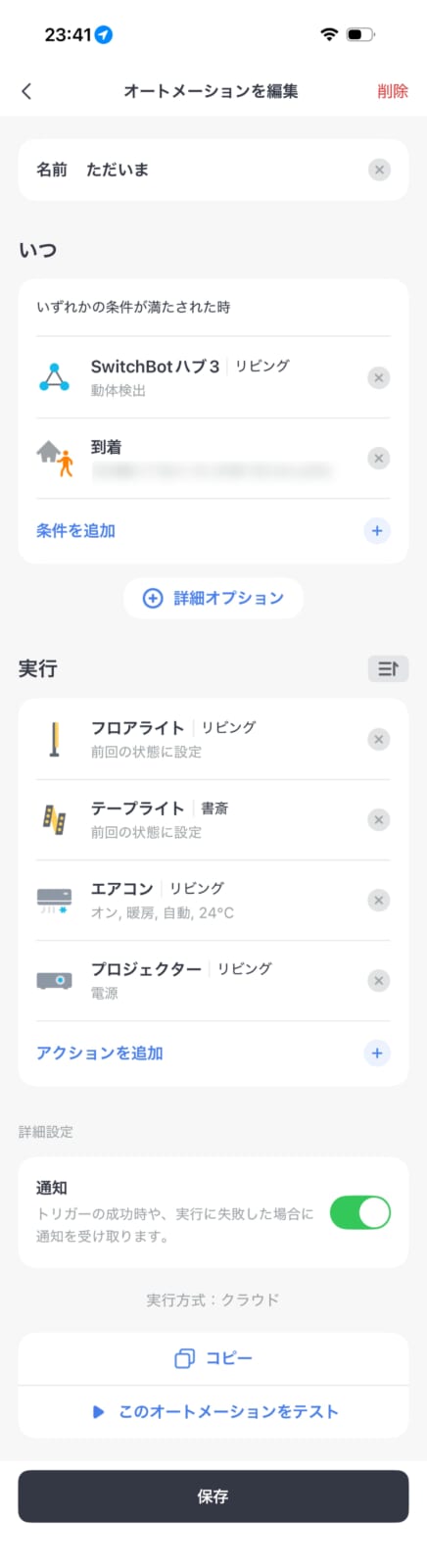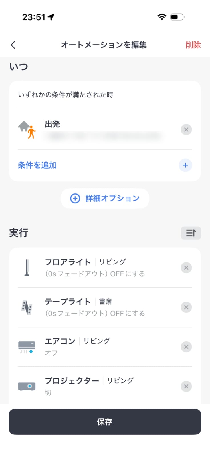 家を出て駅に向かう途中、一定の距離を離れると、自宅の家電が一括でオフになる設定(ジオフェンス)を組んでいます。