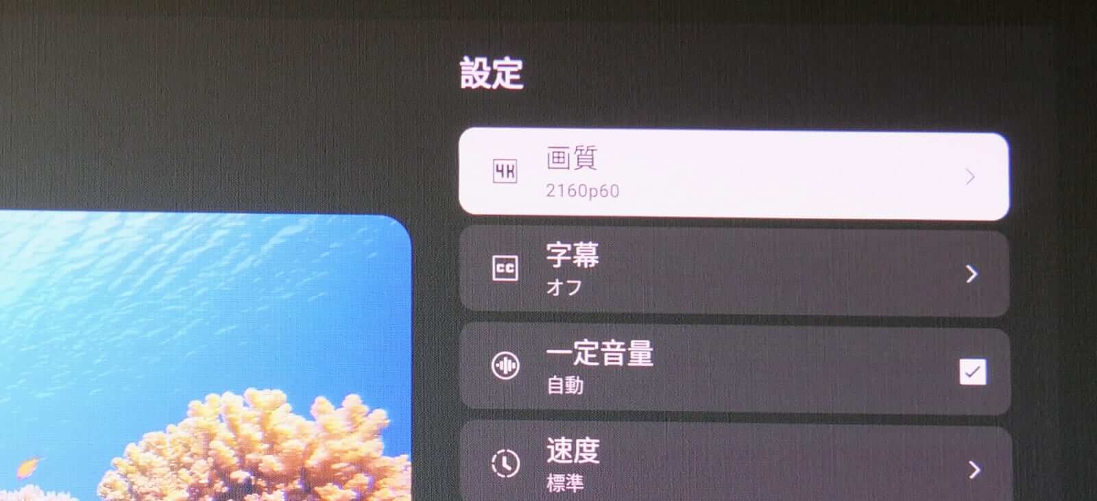 プロジェクター本体の大きさや、圧倒的な映像美から期待するインパクトに比べると、出力がやや控えめで、低音が少し物足りなく感じられました。