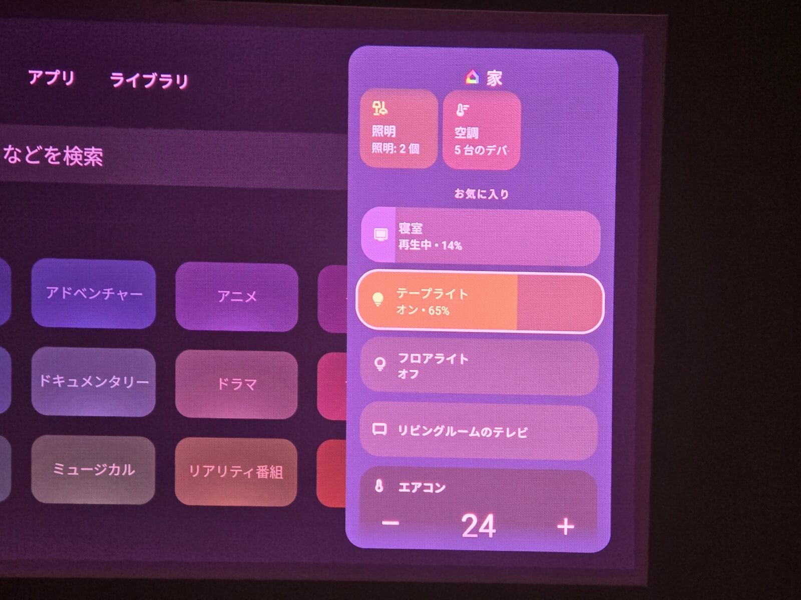 他のスマートホーム家電に接続して、スクリーン上で照明などの音声操作や独自の仕組みづくりもできます。